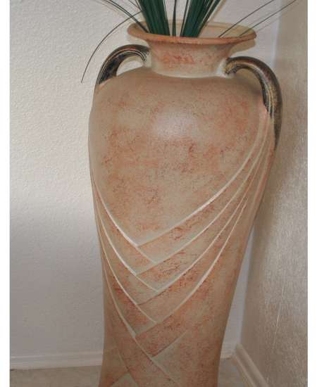Verkaufe eine sehr große Designer Bodenvase Teracotta ca. 1m hoch ca. 19 cm Kopf Mitte ca. 1m Durchmesser unten ca. 78 cm Privatverkauf . Selbstabholer.