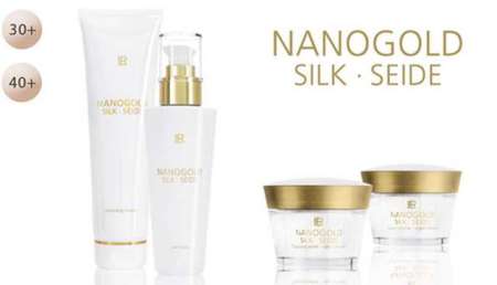 Beschreibung • Nanogold bildet zusammen mit Seidenproteinen einen hilfreichen UVA-Schutz • UVA-Strahlen sind maßgeblich für die vorzeitige, lichtinduzierte Hautalterung verantwortlich • Seidig-luxuriöse Texturen verwöhnen sanft und hinterlassen ein angenehmes Hautgefühl Nanogold enthält Tagescreme Nanogold, Seidenprotein, Specialkomplex Aglycal®, TIMP-Peptide®, Uvinul A Plus* * Trademark der BASF AG Nachtcreme Nanogold, Seidenproteine, TIMP-Peptide®, Specialkomplex Aglycal®, SYN-COLL** ** made by Pentapharm Ltd. Hyaluronsäure, Reductine ®, Algenextrakt, Mix aus 7 Kräuterextrakten Kostbare Pflege mit Nanogold und Seide als günstiges Set Set besteht aus: Reinigungscreme, 150 ml + Gesichtswasser, 150 ml + Tagescreme, 50 ml + Nachtcreme, 50 ml Nanogold Set Best-Nr.: 2684 Preis statt 97,80 € im Angebot 89,95 € inkl. Mwst zzgl 3,95 € Versandkosten „ Mit uns Lebensfreude Pur“ www.wellness-sport-vital.info