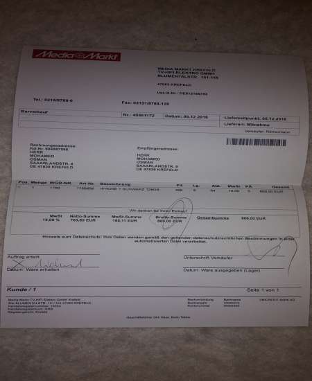 Handy wurde am 5.12.2016 gekauft, Rechnung ist vorhanden. Siehe Bilder bitte!