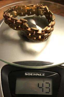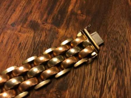 Beschreibung Biete ein ungetragenes Goldarmband 14K /585 gestempelt. Das Armband verfügt über einen Kastenverschluss der ohne Probleme einrastet. Es hat einen doppelten Sicherheitsbügel. Das Armband ist in einem sehr guten Zustand da ungetragen. Außenglieder poliert, innere Glieder gebürstet. Aussenglieder Gelbgold, dann Rotgold, Innenglieder Weissgold.(siehe Bilder). Die Länge ist ca. 20 cm / Breite ca. 1.9 cm. Das Gewicht beträgt ca. 43 Gramm. Verkauft wird die Kette als Schmuckstück nicht als Bruchgold/Altgold oder Schrott. Unseriöse Anfragen werden ignoriert. Privater Verkauf, daher keine Gewährleistung und auch keine Rücknahme. Versandt als versichertes Paket innerhalb Deutschland. Natürlich ist auch eine Abholung oder Übergabe in der Region möglich.