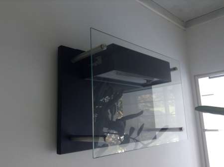 Bioethanol Wandkamin, schwarz mit Sicherheitsglas. |