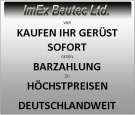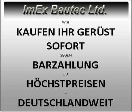 Beschreibung Wir kaufen ständig gebrauchte Gerüste: Layher, Plettac, Rux, Hünnebeck, Müba Gerüst oder kompatibel (Alfix, Asco, MJ) und zahlen Höchstpreise: sofort und bar - - - Der ANKAUF erfolgt in ganz Deutschland !!! --- Richten Sie Ihre Angebote an: ImEx Bautec Ltd. - Tel. 0341 9469917, Mobil 0177 2704910, per Fax 034194 per Fax 0341 9469929 oder per E-Mail imex.bautec@gmx.de Impressum: ImEx Bautec Limited Witznitzer Straße 10a D-04575 Neukieritzsch/ Großzössen Tel.: 0341 9469917 Mobil: 0177 2704910 Fax: 0341 9469929 Geschäftsführung: Vladimir Khatenever Tina Ochotzki Amtsgericht Leipzig HRB 25804 USt-IdNr. DE268226733 Steuer-Nr. 235/111/03339 IBAN: DE35100100100023329101 BIC: PBNKDEFF