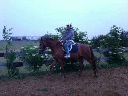 Jonny ist ein 4 Jähriger verschmuster Fuchswallach, hat eine Grundausbildung,ist auch alleine im Gelände zureiten, verträgt sich mit anderen Pferden und Hunden.