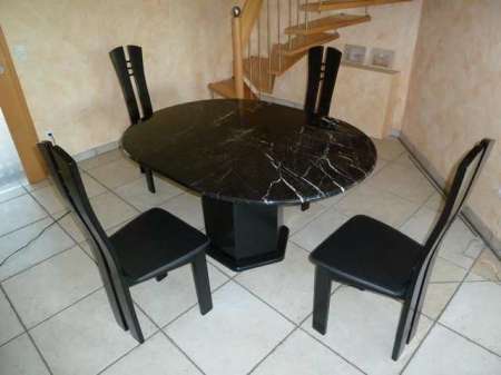 Beschreibung Biete eine hochwetige Esszimmereinrichtung zum Verkauf. Es handelt sich um eien runden Tisch mit 4 passenden Stühlen. Der Tisch hat einen Durchmesser von 1,10 m, durch ein zusätzlich einsetzbares Zwischenstücjk, dss platzsparend im Fuß des Tisches aufbewahrt wird, läßt er sich auf eine Länge von 1,50 m erweitern und bietet somit bequem Platz für 6Exklusive Esszimmermöbel Personen. Die Tischplatte besteht aus einer 2 cm dicken, hochwertigen Marmorplatte, Sie ist absolut unversehrt und hat keinerlei Kratzer oder sonsige Gebrauchsspuren, lediglich das Mittelstück aus Holz müßte etwas nachlackiert werden. Die Stühle haben ein zeitloses Design und sind außerordentlich bequem und rückenfreundlich. Sie sind ebenfals ohne nennenswerte Gebrauchsspuren. Näheres per E-mail oder gerne telefonich unter 05295-997157. Sinnvoll wäre Selbstabholung in Lichtenau/Westf.