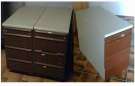Beschreibung alte aber noch recht gut erhaltene Schreibtischcontainer mittelbraun - auch einzeln zu haben - jeweils drei große Schubfächer (bei einer ist etwas abgebrochen) und 1 schmales Fach 79 cm tief 41 cm breit 65 cm hoch nur Selbstabholung