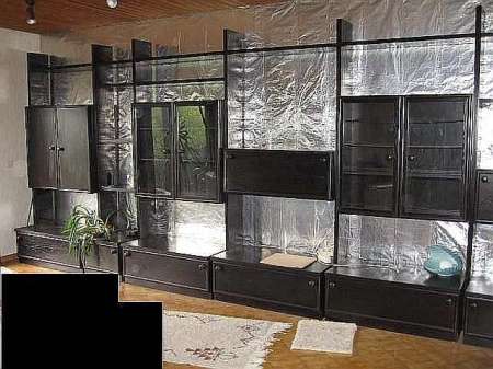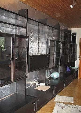 Beschreibung 6 m lange Stollenschrankwand schwarz mit 2 Glasvitrinen, 2 Schrankteilen, 2 Klappfächern und 6 großen Schubfächern 2,44m hoch zu verkaufen. Ist bereits abgebaut. Kann auch verkleinert werden Selbstabholung