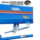 Beschreibung www.zaginarki.net Kontakt im Deutsche Sprache + 48 665954906 Abkantbank ist für Handschneiden und Biegen der Bleche bestimmt - unter Einhaltung technischer Parameter des Produzenten. Aus höchstqualitativem, pulverlackiertem Stahl gefertigt. Zubehör und Kleinteile korrosionsfrei verzinkt. Die Bauweise ermöglicht Korrektur einzelner Elemente und sichert hohe Steifigkeit der Konstruktion. Die mechanischen Elemente, wie: Neigungswinkel des Druckbalkens, Druckkraft des Druckbalkens und Symmetrie des Oberbalkens gegenüber dem Unterbalken sind einstellbar. Die Rollenschere kann während des Blechzuschnitts in Endpunkten der Führungen stehen bleiben -muss nicht abgelegt werden. Alle Elemente der Biegemaschine sind fertig eingestellt und die Nachstellung ist nicht nötig. Biegelänge 2140mm Biegewange 15mm Biegeleistung Stahlblech 0.7mm Kupfer /Zink 0.8 mm Aluminium 1.0 mm Gewicht – 165 kg ROLLENSCHERE–Rollenklingen von Hochlegierung Stahl (max. Dicke der geschnittenen, verzinkten Stahlbleche: 0,80 mm). Dauerbeständigkeit der Schnittrollen: 25 km bei 0,5 mm Blechstärke. Die Rollen lassen sich einige Male nachschärfen. Stahlrollen sind sehr steif und pulverlackiert. Gewicht - 5 kg. Bei Bedarf kann man nur die nur die Schnittrollen allein zukaufen. HANDFALZMASCHINE- Bequemes und sehr schnelles Werkzeug für genaues Zudrücken des vorgefertigten Falzes in einem Arbeitsgang. Ideal für ästhetische Ausrüstung von Dachtraufen und Traufblechen. Es drückt den Falz zu und lässt die”Träne” – Blech wird nicht gebrochen oder Blechfläche beschädigt. Als Arbeitselement wirkt ein System von 4 Formrollensätzen in Kaskadenform, die den Druck auf das Blech stufenweise steigern. Das letzte System, mit einstellbarer Fugenbreite, ermöglicht Anwendung des Werkzeugs für verschiedene Blechdicken und Erreichen gewünschter Toleranz. Versand 100 euro