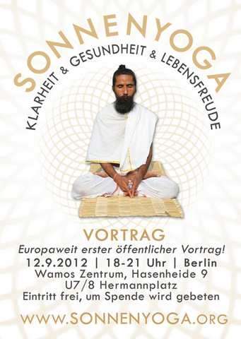Beschreibung Europaweit erster öffentlicher Vortrag am 12.09.2012 mit dem Sunyogi- Umashankar aus Indien. Eintritt frei. Spenden sind willkommen. Veranstaltung geht von 18-21 Uhr und findet bei Wamos statt. WAMOS Zentrum für ganzheitliche Lebensführung Hasenheide 9 10967 Berlin Wegbeschreibung: U7/8 Hermannplatz Rechter Ausgang Richtung Hasenheide (nur im U- Bahnhof von U7 ausgeschildert) Toreinfahrt Hasenheide 9 (nicht Hauseingang) Jetzt ganz gerade durch, in 2. Hinterhof Aufgang 1 Mit Fahrstuhl bis ganz hoch 4. Obergeschoss Informationen unter : 0177- 195 4633 |
