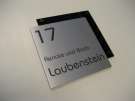Beschreibung Luxus Türschild das aus einer schwarzen Acrylat-(Kunststoff) Rückplatte besteht, auf der eine geschliffene Edelstahl-Optik Platte befestigt ist. Hierdurch wird ein stilvolles Design verwirklicht. Sie gestalten Ihr Schild online auf: namenundmehr. de