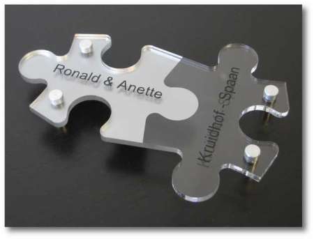 Beschreibung Modernes Türschild aus Plexiglass. Das Schild ist 30 x 18 cm und ist teilweise hinterlegt mit frosted und silbernen Vinyl. Sie können sich das Püzzelstück ansehen und bestellen auf namenundmehr. de