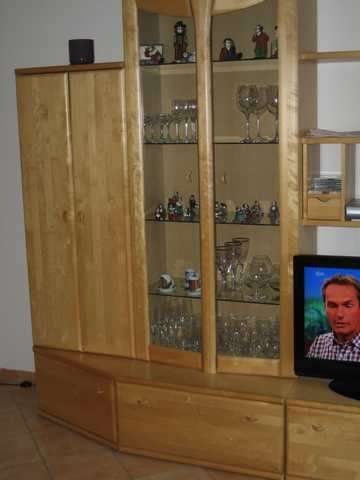 Beschreibung Schrankwand hell, ca. 2,80m breit, 2,20 m hoch, max. Tiefe der 2 unteren Schubkästen: 60cm, Beleuchtung der beiden Glastüren, insgesamt gut erhalten, normale Gebrauchsspuren, leicht zu demontieren, nur gegen Selbstabbau und Abholung, ohne jegliche Deko und ohne Geräte, (Wohnung liegt Parterre, gut erreichbar), Abholung ca. Anfang Okt. 2013, ggf. auch früher.