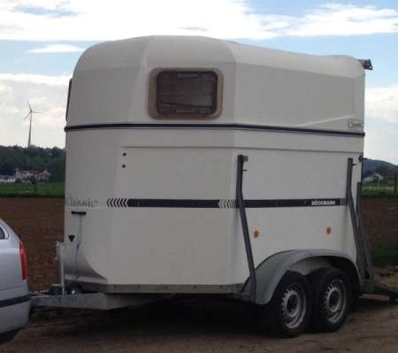 Verkaufe einen Böckmann Classic Pferdeanhänger für 2 Pferde (Vollpoly). BJ 93. Hat neue Reifen (von 2011), neues Stützrad, Ersatzrad. Ohne Sattelkammer. Sehr leicht - ca. 800 kg Leergewicht. Stecker ist auf 13 polig aufgerüstet. Rampe-Hebehilfe voll funktionsfähig. Grüne Nummernschilder (Steuer und Versicherungsfrei). Anhänger hat einen hohen Fahrkomfort hinter dem Auto. Frisch tüv gemacht und auf Herz und Nieren geprüft bis Oktober 2015. Optisch sehr guter Zustand. Angebot VB - Besichtigung jederzeit möglich. Kann sofort abgeholt werden.