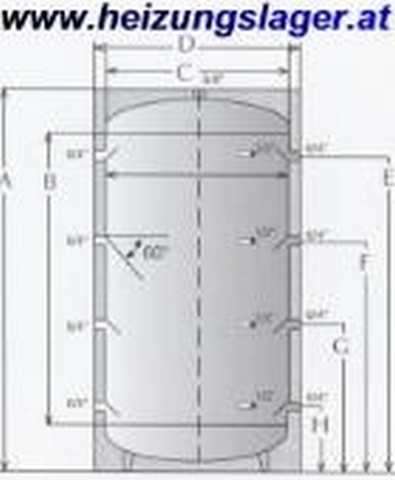 Beschreibung Höhe (A): 2040mm Durchmesser (C): 790mm Durchmesser (D): 990mm Kippmaß: 2090mm Speicherinhalt: 1000 Liter MADE IN SWITZERLAND -aus 3-4 mm starkem Stahlblech nach DIN 4753 -innen schwarz, aussen rostschutzgrundiert -100 mm Weichschaumisolierung 100% FRKW-frei -Folienmantel in der Farber silber -Transport: die Pufferspeicher werden auf Paletten verschraubt; die dazugehörenden Isolierungen werden separat verpackt. -max. Betriebsdruck 3 BAR -max. Betriebstemperatur 95°C