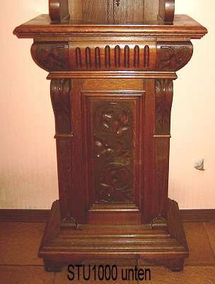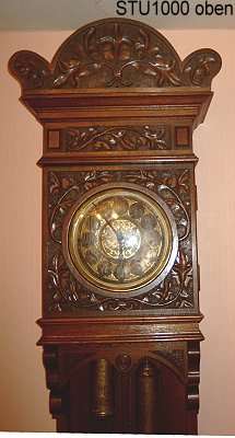 Eine Standuhr vom wahrhaft stattlichen Ausmaß. Die Uhr datiert 1880. Es ist eine Gründerzeituhr. Imposant und von vollendeter Schönheit sind die Schnitzereien. Augenfällig ist hier die gewaltige prachtvolle Krone. Ein wahres Meisterwerk an Schnitzkunst. Zudem handelt es sich bei der Standuhr auch noch um einen seltenen Freischwinger. Pendel, Gewichte und Zifferblatt sind original erhalten. Die Uhr hat außerdem einen vollen und halben Stundenschlag. Von einzigartiger Ausstrahlung ist das elegante Design. Infos zu dieser Standuhr gibt es im Online Shop Antikblick bei Standuhren. Artikel Nr. 1000, € 4300,00