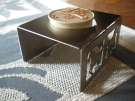 aus 1 mm Edelstahlblech (nichtrostend), geschliffen / gebürstet.