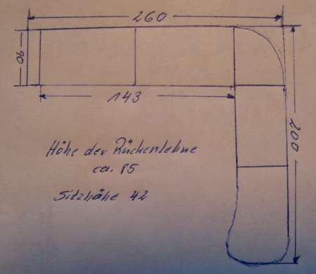 2 Schenkel + Eckteil und läßt sich mit wenigen Handgriffen durch ausziehen u. umklappen zur Liegefläche gestalten.